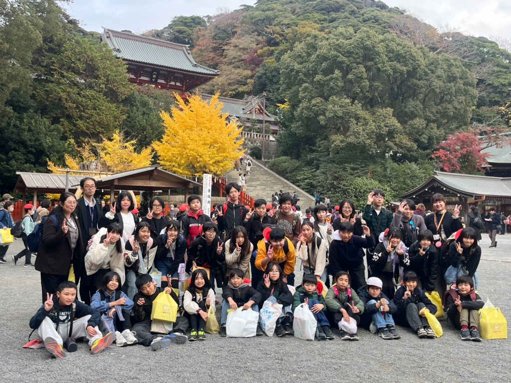 新江ノ島水族館、班別行動で江ノ島・長谷寺・高徳院などを巡り、鶴岡八幡宮に集合し、参拝後、ホテルへ向かいました。