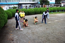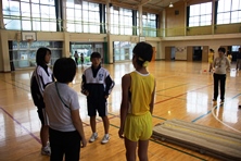 親善運動会に向けて岡部中の生徒がコーチにきてくれました。