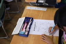 そのあと教室に戻りアサガオの成長記録をつけていました。順調に育つ様子を丁寧に書いていました。きれいな花が咲くようにこれからも水やりがんばりましょう。