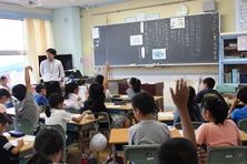 深谷市では、文部科学省より教育課程特例校の指定校を受け、小学校1 年生から英語活動を導入していきます。英語を用いて相手のことを理解したり、自分のことを伝えようとしたりする活動を通じて本校の学校教育目標を実現していきます。活動の様子を学校だよりやHP 等でお伝えしていきます