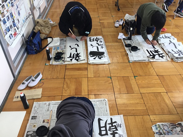 3校時に、5年生が書きぞめの練習をしていました。さすが、5年生誰一人しゃべる人なく、静かに集中して書いていました。