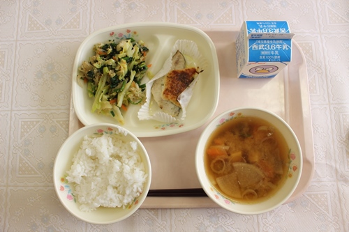 今日は、鰆のめんたいマヨネーズ焼きでした。めんたいマヨネーズ味がおいしくて、ごはんがもりもり進んでいました。魚が苦手な子どもも食べられたようでした。豚汁は、具だくさんで優しい味でおいしかったです。みんな、おいしそうに食べていました。