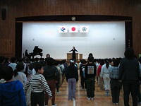 代表児童2名から、2学期の振り返りの発表がありました。2学期に頑張ったことや3学期に頑張りたいことを堂々とした態度で発表していました。その後、校長先生から2学期の始業式のお話の振り返りや冬休みの過ごし方についてお話がありました。安全に気を付けて楽しい冬休みを過ごしてください。冬休み中も規則正しい生活を心がけ元気に3学期に会いましょう