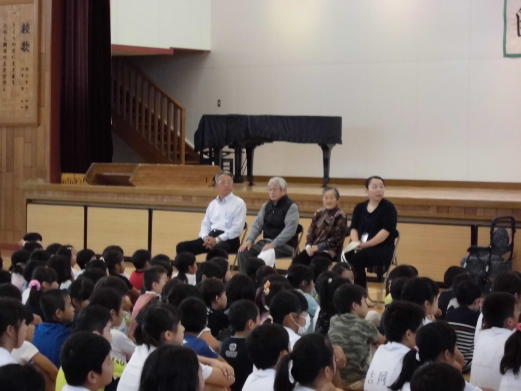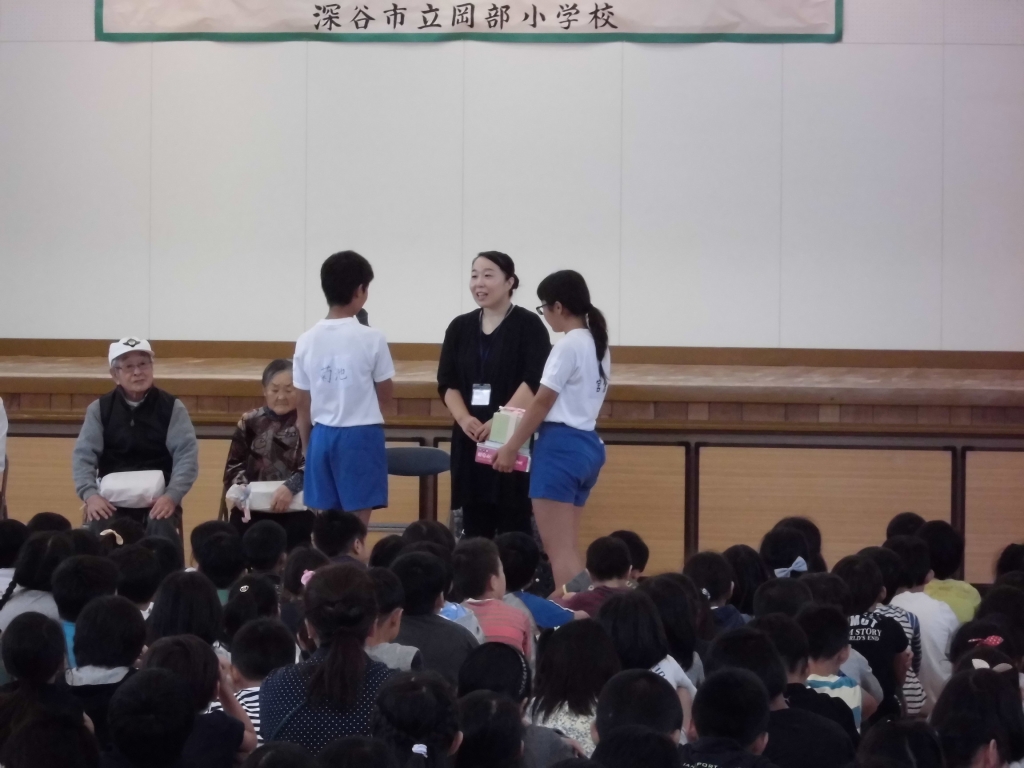 朝の児童集会の時間、「福祉の心を育む事業交流会」が行われました。ご家庭から寄付していただいたボックスティッシュやタオルを福寿園さんにお渡しし、福寿園さんからは、福祉に関する図書を寄贈いただきました。ちょうどパラリンピックが終了したところでしたので、よいタイミングで行うことができました。