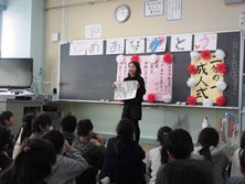 20歳の成人式の半分、10歳になった4年生が授業参観日に保護者の前で発表しました。