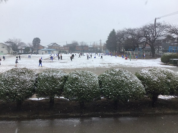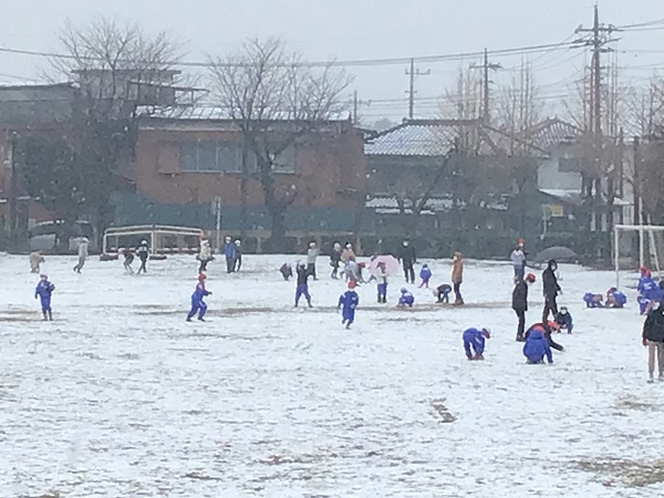 業間休みから、学年ごとに校庭で遊びました。1年生は、生活科の学習をしました。6年生は、集合写真を撮っていたようです。もう、雪はほとんどなくなり、今は、雨になってきたおうです。つかの間の雪遊びができたようです。