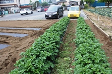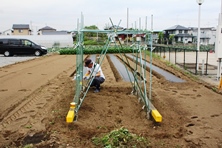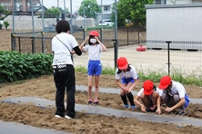 毎年育てています。大きくおいしい実が育つように願って児童がまいています。学校ボランティアの方にマルチシートをはっていただきました。また、畑も耕していただいています。児童のために毎回どうもありがとうございます。