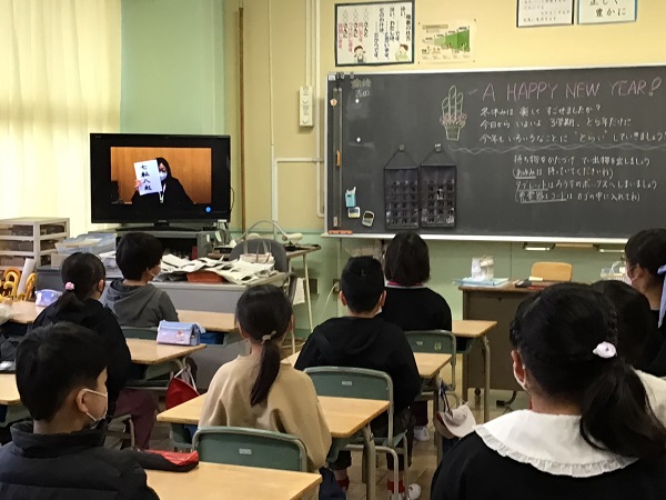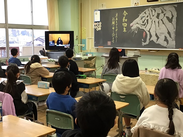 校長室からオンラインで第3学期の始業式を行いました。3年生、4年生の代表児童の3学期(新年)の抱負から始まり、勉強だけでなく、友達と仲良く、そして、体力もつけていきたいなどの目標を発表してくれました。