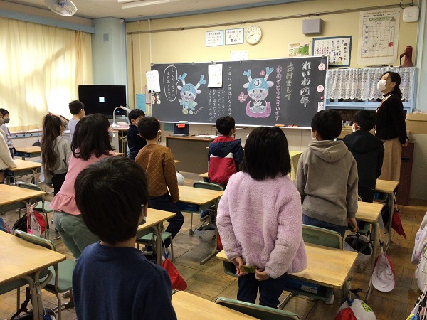 その後、教室に行くと、係を決めたり、新年の目標を掲示したり、国語や算数の学習を各クラスそれぞれで行っている様子を見て、新学期が動き始めたなと思いました。