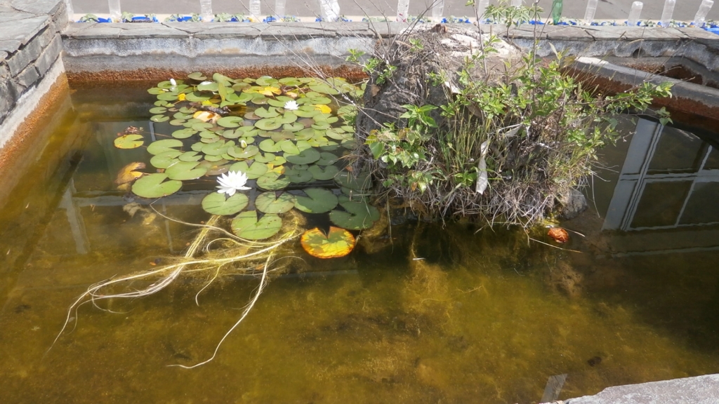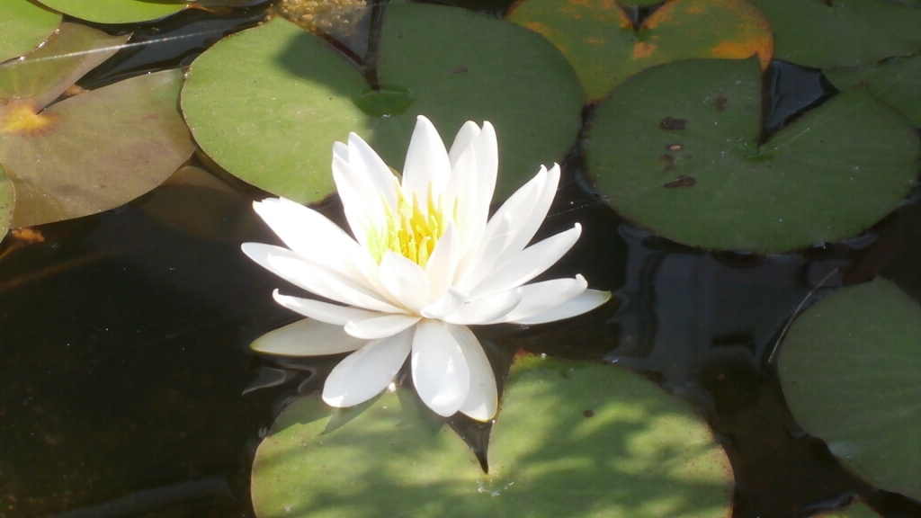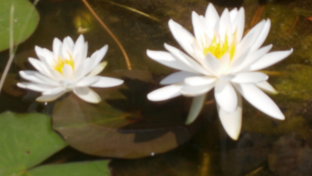 今朝、知恵の鏡池を見ると、白色の「水蓮」の花が咲いていました。