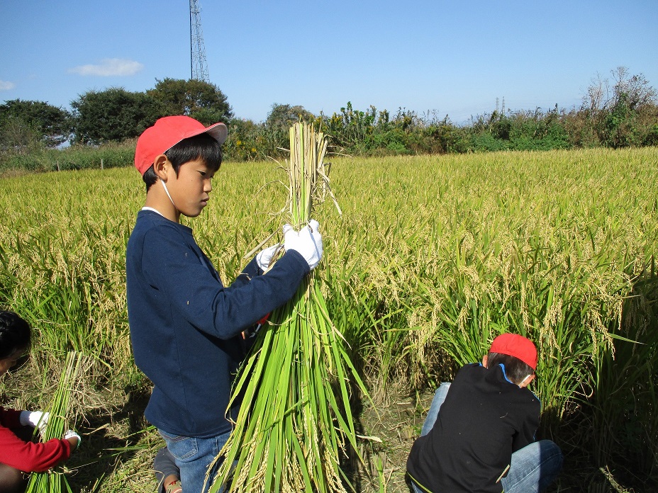5年生は、9時30分に学校を出発し、水辺の里(田植えをした場所)で、稲刈りを行い、収穫の秋、実りの秋を体験を通して実感できました。そして、今日の稲刈りのために、岡部の自然を守る会、岡部ロータリークラブの皆様、保護者の皆様には事前の準備や児童の安全の見守り、稲刈り・脱穀の指導・・・と、大変お世話になりました。