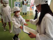 先週給食室前では爪がきれいかや、あいさつができているかなど給食委員会で身支度チェックを実施していました。