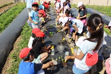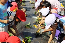 夏に向かってきゅうりやなすがどんどん成長しています。6年生や2年生もさつまいもを植えました。マルチシートに穴を開けて丁寧に植えていました。こちらは秋頃収穫できるでしょう。楽しみです。