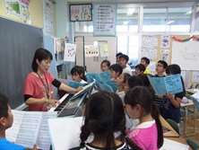 パートで集まり歌の練習です。担任の周りを囲んで一生懸命歌っていました。まだ練習もあまりしていないのか音程がうまくとれていない児童もいました。しかし何度か繰り返すと少しずつ合ってくるのがよくわかりました。