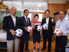 今日岡部ライオンズクラブの方がサッカーボールの寄贈をしてくださいました。
