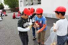 明日の給食に出るたけのこごはんの準備を2年生がお手伝いしました。