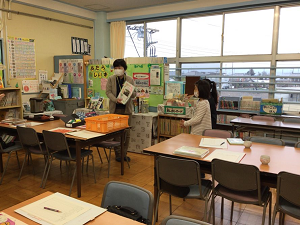 本日の朝の読み聞かせ終わりに、子どもたちが書いた「ありがとうの手紙」を、3年生代表2名が読み聞かせボランティアの方々へ送りました。