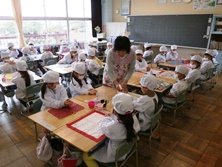 今日は初めての給食でした。初日は6年生が全部用意、片付けまでしてくれました。