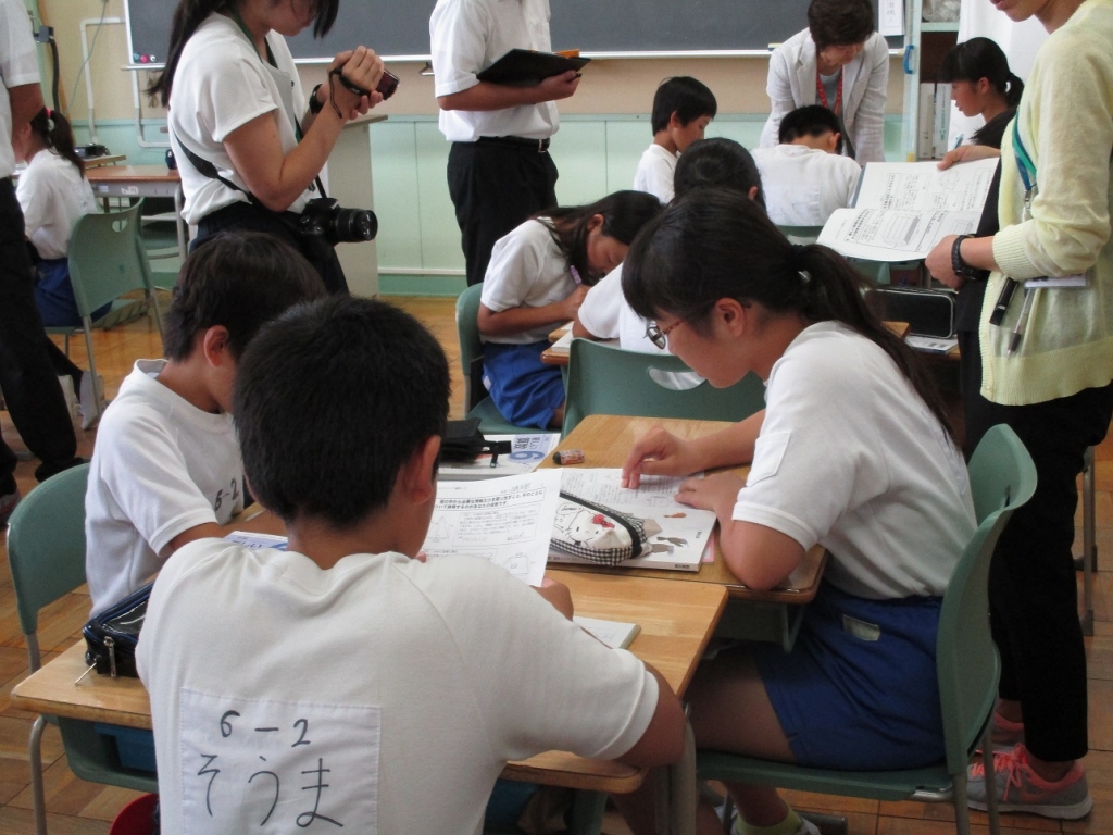 7月8日(金)第5校時、6年2組小林学級で、算数科の公開授業を実施しました。本校は深谷市教育委員会から算数科の研究委嘱を受け、「確かな学力を身に付けた児童の育成~知識を活用しい主体的に学び合う(アクティブラーニング)算数科の授業実践~」を研究主題に研究を進めています。