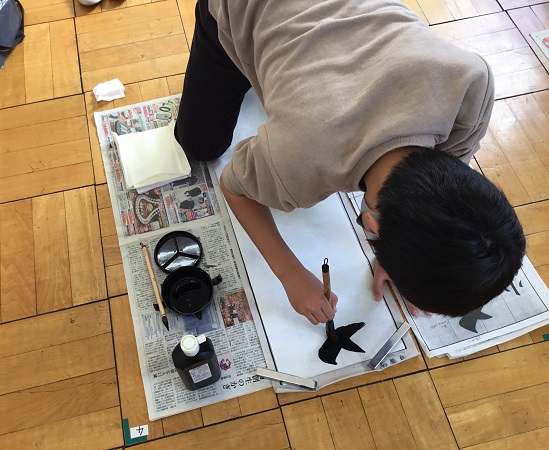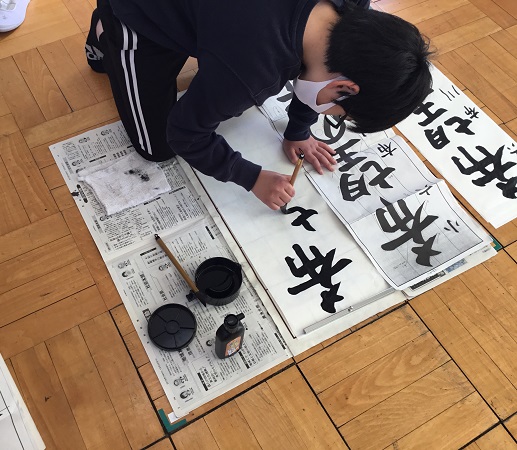 6年生が書きぞめの練習をしていました。みんな真剣に書いていました。小学校の書きぞめも今年が最後になります。