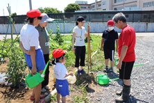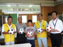 たくさん使わせていただきますボール寄贈ライオンズクラブの方からボールの寄贈をいただきました。サッカーボールです。授業やクラス用のボールとして活用させていただきます。本当にありがとうございました。硬筆練習今週から市内硬筆展にむけて放課後練習を始めました。 今は一文字ずつ練習をしています。岡部小学校の代表としてがんばっています。児童の皆さんも応援してあげましょう。プール今日は久しぶりの晴れでした。1番プールは6年生でしたが他の学年も初プールとなりました。 約1年ぶりで準備に少し手間取っていましたが最後はすっかり水に慣れたようでした。見学者もいましたがほとんどの児童が一年ぶりのプールを楽しみました。農作業特別支援学級が畑に大豆を植えていました。 1つ1つていねいに穴を掘って植えていました。他にもピーマン、ミニトマト、なす、キュウリなどたくさん植えているそうです。