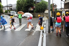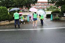 予想より台風の影響がなく児童の7割くらいが徒歩で登校しました。保護者やボランティアの方も急な登校時間の変更に対応していただきありがとうございました。
