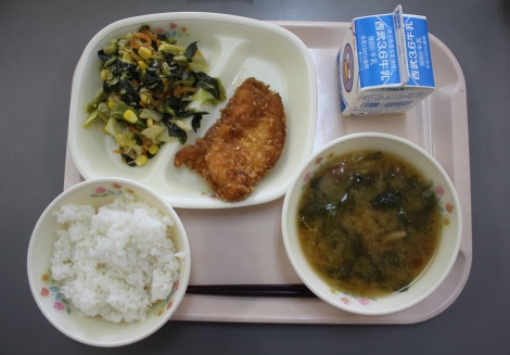 今日は、好きな給食アンケートで第1位になったカツ丼でした。朝から給食の時間を楽しみににしていた子どももいました。甘めのたれが絡んでいて、大きくてやわらいカツでおいしかったです。ごはんにもよく合っていて、ごはんがもりもり進んでいました。子どもたちもおいしかったと口々に言っていました。どのクラスも、ほとんど完食していました。6年生は、小学校で食べられる給食もあと3回になりました。6年間の給食に感謝して残さず食べられるようにしましょう。