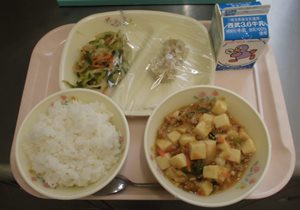 今日の給食では、麻婆豆腐が出ました。具沢山でとても食べ応えがありました。