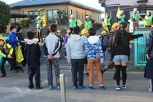 めっきり寒くなりましたが、児童はポカポカ暖かいあいさつを交わしています。正門では交通ボランティアさんと児童がハイタッチをしていました。