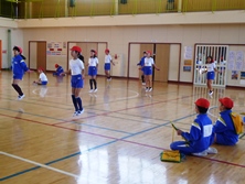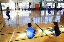 前跳びと選択種目に分かれて記録をとりました。前跳びは1,2年生は2分、3,4年生は3分、5,6年生は4分飛び続けることができたら合格です。ある児童は飛び終わったあと「やったー、できたー」ととても喜んでいました。