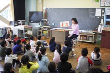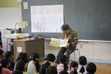 朝の活動、読書タイム中の読み聞かせの様子です。