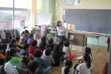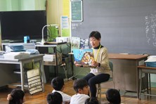 月に3回ボランティアできていただいています。児童は静かに読み聞かせに耳を傾けています。写真を撮るときも音を出さないように気をつけています。いろいろな本を毎回見つけいただきどうもありがとうございます。