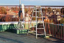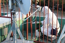 またハチが見つかりました。今回はミツバチでしたが屋上に巣を作っていました。