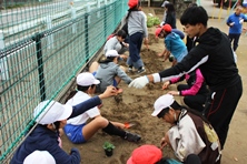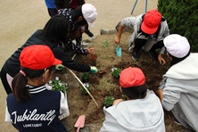 今年2回目になります。ボランティアと児童が協力して花壇に花を植えました。