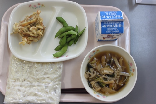 今日から6月になりました。今月の給食目標は、衛生に気をつけて食事をしようです。衛生に気をつけて食事をしましょう。今日のカミカミかき揚げと枝豆は季節の献立でした。カミカミかき揚げは、するめが入っていて、噛みごたえがありおいしかったです。よく噛んでかみかみ運動はできましたか。よく噛んで食べることは、体によいのでよく噛んで食べるよう心がけましょう。