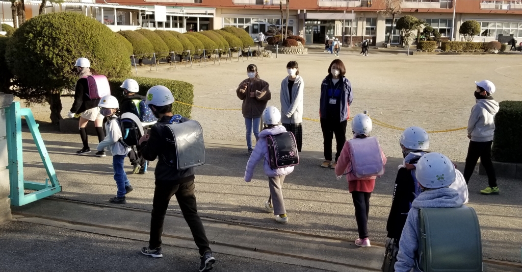 登校してくる児童も目を合わせて気持ちのよいあいさつをしています。