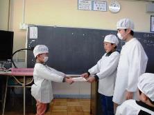 給食委員の子が毎日食べ残しが少なかったクラスを表彰しました。