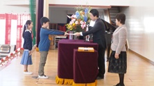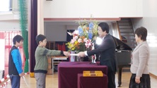 修了証を渡し1年生がどんな2年生になりたいか作文を読みました。