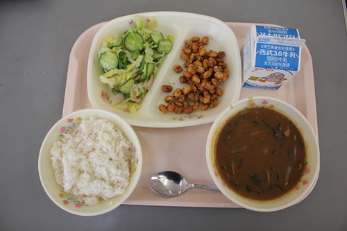 ほうれん草のことを英語でスピナッチといいます。スピナッチカレーは、今が旬のほうれん草をたくさん入れて作ったカレーです。ほうれん草にはカルシウムや鉄分、ビタミン類が豊富なスタミナ野菜なので、たくさん食べて丈夫な体をつくりましょう。