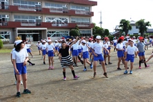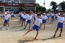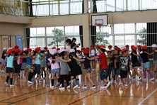 高学年はダンス、中学年はケイドロ、低学年はじゃんけん列車で交流を深めました。
