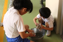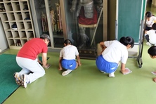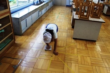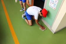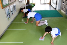 掃除の時間、もちろんほかの児童もきちんと膝をついて拭けていました。みんな丁寧によく掃除ができています。