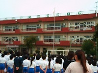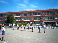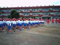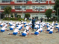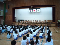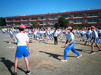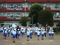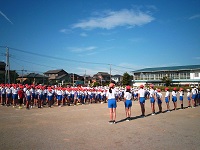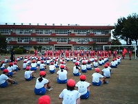 昨日から、運動会練習が本格的に始まりました。今日の朝は、全校で運動会練習がありました。整列の仕方とおかべっこ体操をやりました。初めての全校での練習でしたが、みんなよく頑張っていました。おかべっこ体操も定着してきましたね。