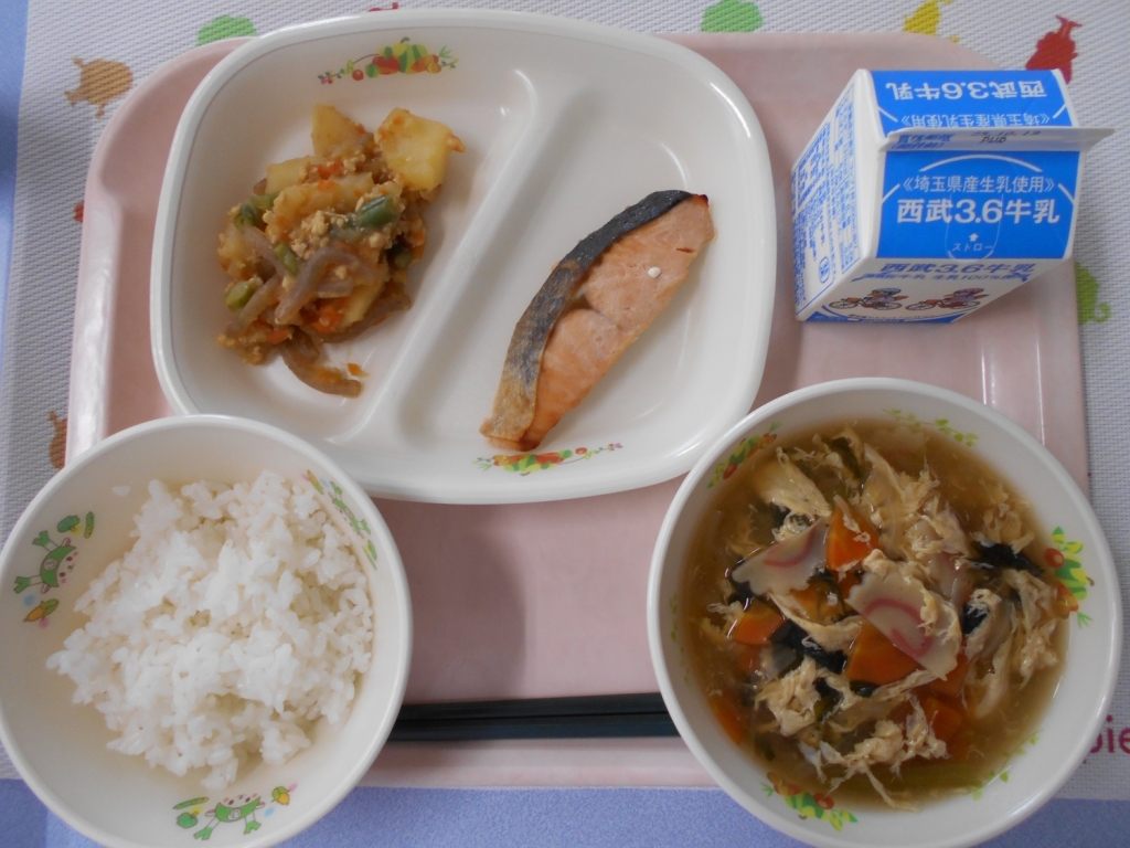 『じゃがいものそぼろ煮』は片栗粉でとろみをつけました。