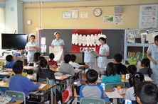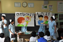 歯科衛生士のたまごの方々を招き2年生と4年生で歯みがきや歯のことについて教えていただきました。