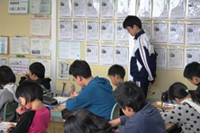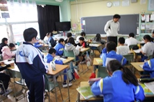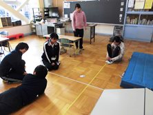 中学生は3日の職業体験、看護実習生は2日の実習になります。実習生は毎年ですが、今年は初めて中学生も職場体験学習で勉強にきています。最初は4人とも緊張していましたが、昼休みには児童と遊んでいる姿が見られました。