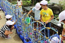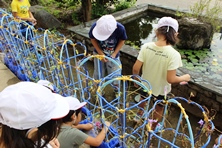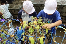 1年生が1学期に育てたアサガオから種を収穫していました。