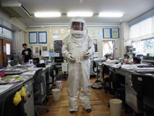 岡部支所に防護服を借りにいき,教頭が巣を取り除きました。児童がけがをする前に見つかり一安心です。