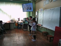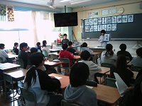 今日は、放送委員会と掲示美化委員会のみなさんが、委員会の仕事の紹介やみんなに知ってもらいたいことを劇にして発表してくれました。発表の中でクイズもあり子供たちも楽しんでいました。