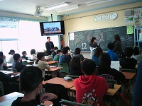 劇の途中では、給食にちなんだクイズを出し、児童たちは、給食委員の発表を一緒に参加し、楽しい児童集会となりました。