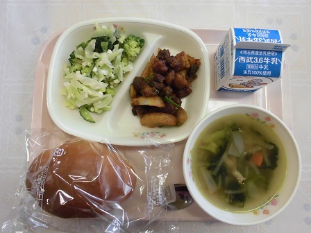 豚肉は、甘辛い味付けで、じゃがいも入りで、おいしかったです。食が進みます。グリーンサラダは、小さくカットしたチーズが入っていて、アクセントになり、おいしかったです。